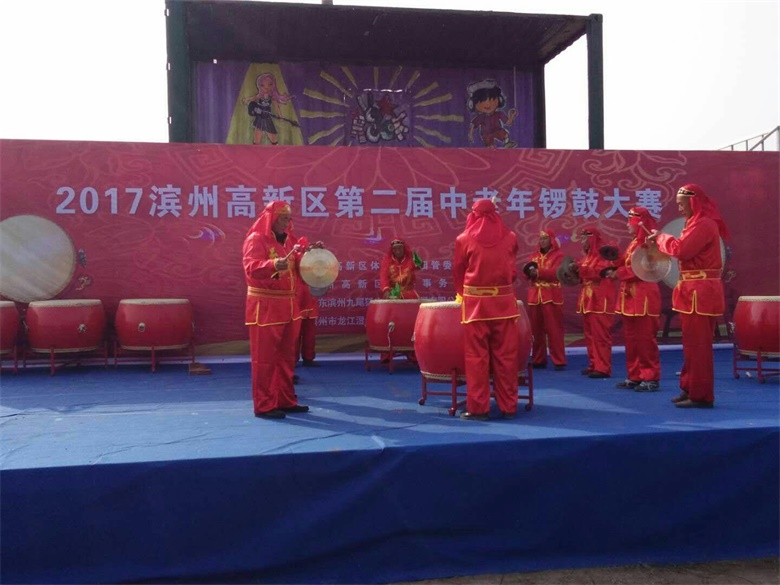 青田街道办事处组织锣鼓队到沙雕公园演出。
