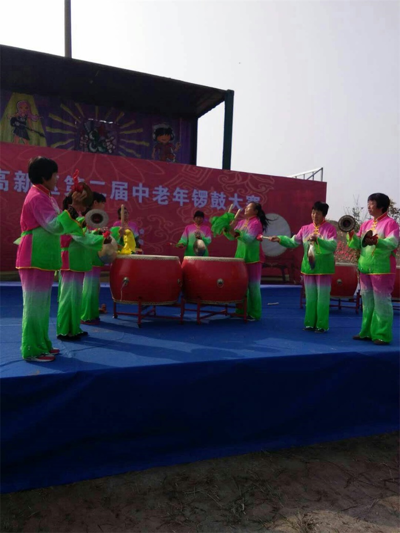 青田街道办事处组织锣鼓队到沙雕公园演出