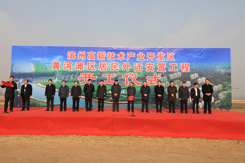 12月23日,滨州高新区黄河滩区居民外迁安置工程开工仪式在小营办事处举行,标志着我市黄河滩区脱贫迁建工程全面启动。据悉,高新区滩区共有南闫、北闫、代家、邵家、刘汤5个行政村,涉及群众836户、2129人。此次高新区黄河滩区居民外迁安置工程规划建设11层住宅楼15栋,总建筑面积9.5万平方米。该工程成为我市实施黄河滩区外迁安置工作开工建设的第一个工程。省发改委农经处调研员、省黄河滩区脱贫迁建推进组负责人靳为公,市委副书记、市长崔洪刚,市委常委、常务副市长赵庆平,市政府秘书长袁朝晖,高新区领导李福友、劳建刚、田发元、刘伟忠等出席开工仪式。